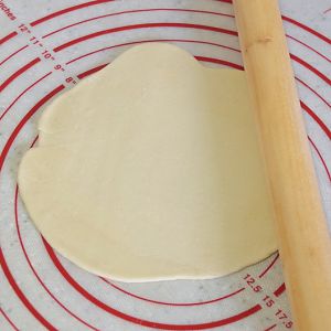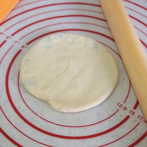 将面团切出一小团,用擀面杖擀平。