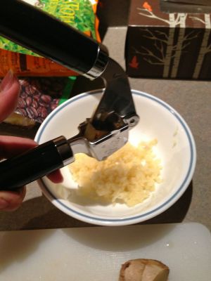 8再调入少许煮肉汤汁,搅拌均匀调成蒜泥汁。