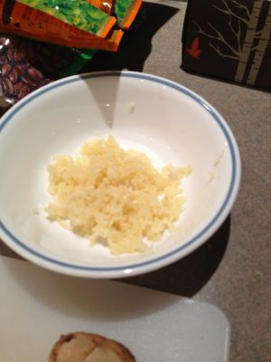 蒜泥加入酱油、蠔油、半匙白糖、少许寿司醋,拌匀。这些东西的量随机,视乎五花肉的量。