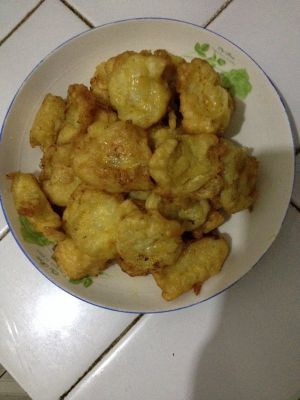 生粉加适量水搅拌,最好加入一个鸡蛋。把香蕉放入裹满蛋液。