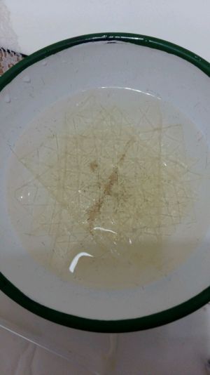 把水煮开,放布丁粉,撹匀,可以倒进小婉里了