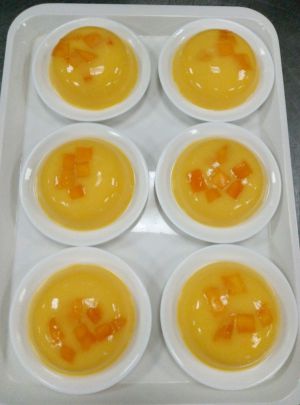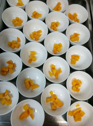 冷却后铺上芒果,就可以享受美味啦,冷藏后味道更佳。
