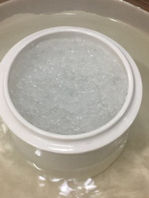 需要一个300~400ml的炖盅,将燕窝放进去,然后加入纯净水,高过燕窝一点点就OK,这样,炖出来的燕窝会像果冻一样。
