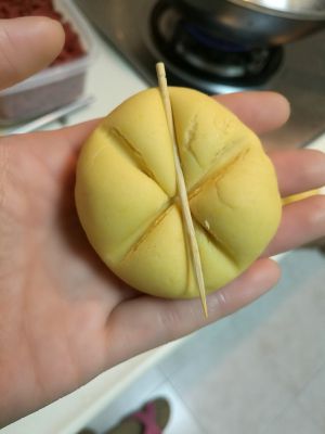 揉成团后,搓长条,取适量搓原后压扁成圆型,当然,有模具的朋友也可以创意出自己喜欢的样式,不过不推荐,因为刚蒸好时很软,会变形。