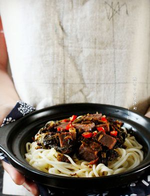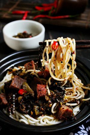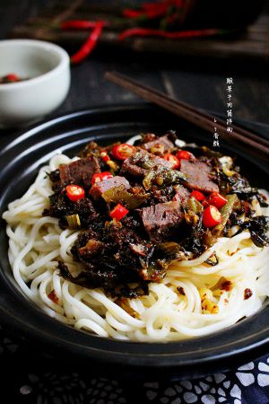 做法1:酸菜牛肉酱拌面