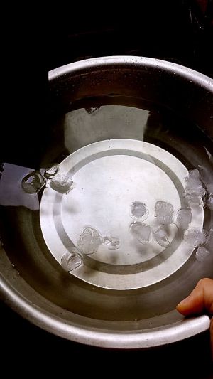 准备一盆加了冰块的凉开水
