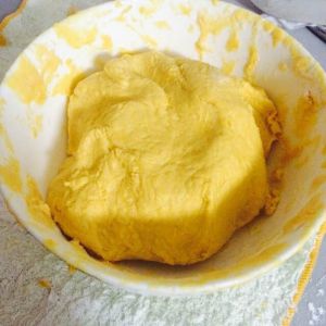 南瓜蒸熟加糖糯米粉揉成这样