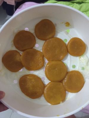金黄灿灿的南瓜饼就出锅啦!宝贝可喜欢吃了!