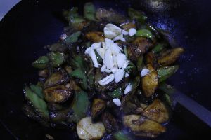 调料翻炒均匀入味后关火放蒜末,淋上香油,颠匀即可