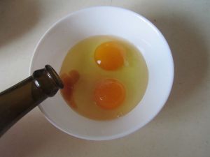 鸡蛋打入碗中, 加入适量盐和1小勺料酒拌均匀备用;