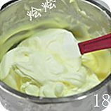 ②打蛋器高速将步骤①中的蛋黄打至体积蓬松的泡沫状,备用 ③用刮刀将马斯卡彭奶酪压拌至没有结块的细腻状,分次将步骤②中的蛋黄糊加入,用蛋抽混合打匀