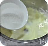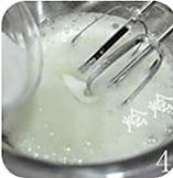 蛋黄加糖用打蛋器打匀,隔水打发到蛋黄发白,糖融化,慢慢加入牛奶,一边加牛奶一边搅拌,直到蛋奶液从稀变浓稠,全程小火隔水加热