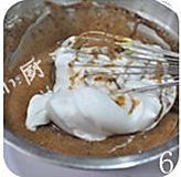 再将剩下的蛋白倒入蛋黄糊中,用手动打蛋器拌匀。