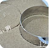 将烤好的蛋糕片用慕斯圈切出2块,其中一块用剪刀修小一点。