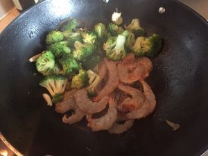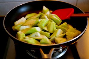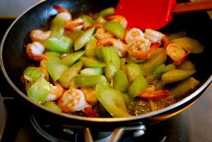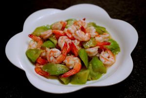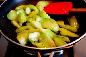 丝瓜翻炒一会儿变色变软即可加入腌制好的虾仁翻炒,忘拍加入虾仁的图了