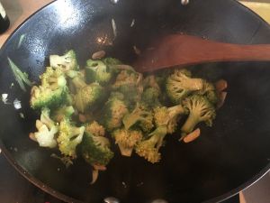 出锅,装入摆好西兰花的盘中。怎么样,是不是很有颜值,有内涵呀!哈哈
