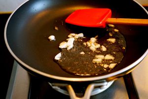 倒入虾球翻炒变色,然后加适量盐、酱油、料酒