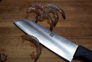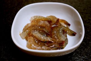 鲜虾去壳去头去虾线,虾的最后一节和虾尾留下来