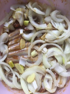 提前把羊排清水泡两个小时,泡出血水,在羊排上扎孔,方便入味。用椒盐,孜然,料酒,白糖等以上调味料均匀抹在羊排上下,用手按摩入味,撒上洋葱,姜片,用保鲜膜封好放入冷藏12小时