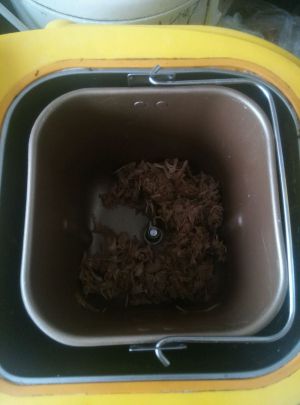 把肉碎放入面包机,开启果酱模式1h20分钟。(期间可以不停观察,可加入盐,糖,芝麻等调味。适当调整面包机时间,千万不要炒的太干了,否则就是肉干了,很硬,宝宝吃不了)