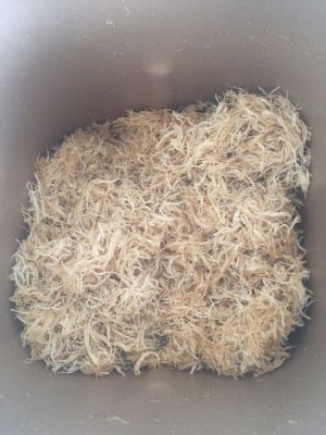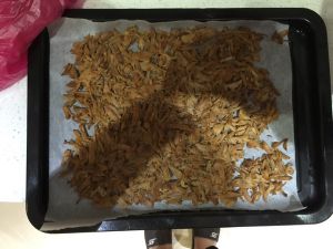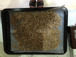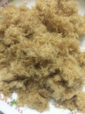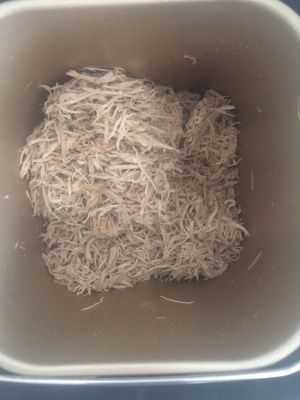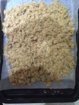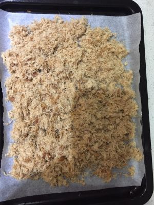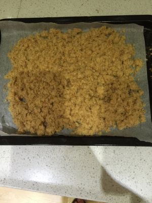 第一次搅碎状态,肉松还不够干,铺盘继续烤,130度,15分钟