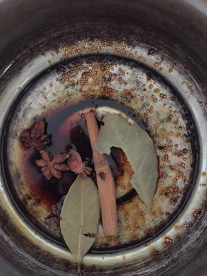 放料酒,生抽,姜,葱,蒜一起高压锅煮,煮至肉烂