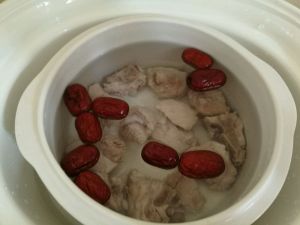 一个半小时的小火炖煮后,加入百合跟莲子继续煲半个小时,再加入枸杞,放适量盐调味,继续炖煮十分钟即可。