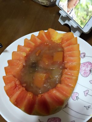 放入枸杞 和冰糖(自己爱吃甜的就多放一点 木瓜本身有甜味所以不建议放太多)
