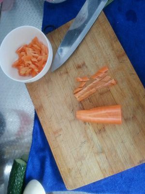 胡萝卜用量和黄瓜差不多,切片改成菱形小片。