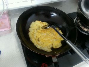 现在正式开始,先炒鸡蛋,盛出备用。