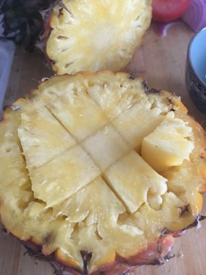 选菠萝,对切,挖掉菠萝肉!