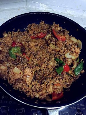 加入米饭,中火翻炒均匀后出锅.(ps米饭需要蒸硬一些)