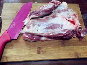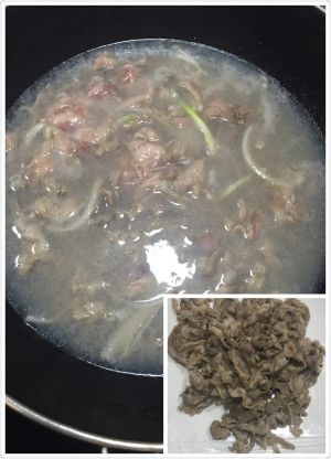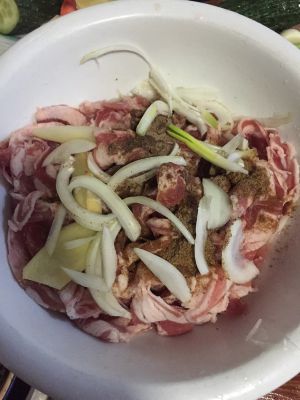 把羊肉切成丁状或片状 用料酒腌制十分钟去膻味。