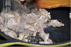 锅内放少许油防止粘锅 把羊肉倒进去翻炒至变色