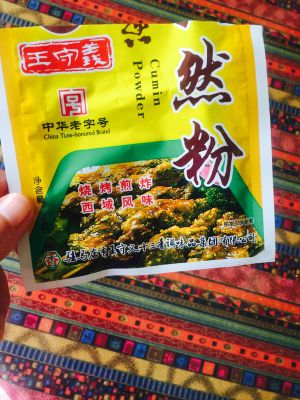 炒的时候会出很多水,加入佐料辣椒,白芝麻,孜然,茴香翻炒,我用的是比较粗的辣椒粉,这个口感不辣,喜欢吃辣的换成细的辣椒粉,最好粗细掺在一起放,只放细的太辣了