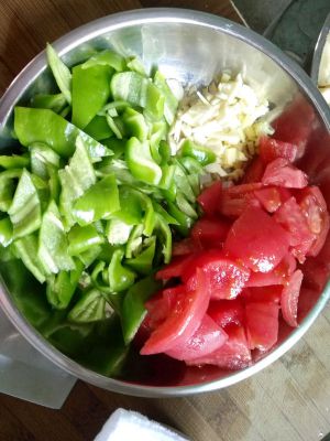 把洗好的西红柿,辣椒,葱姜蒜切好。西红柿是要提前用热水烫下去皮。