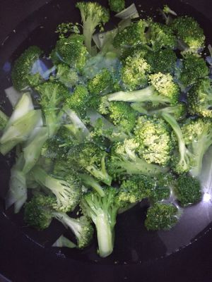 将焯完水后的西蓝花捞出备用,倒掉锅里的水后将锅擦干。