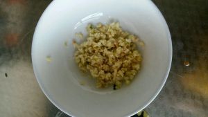 调汁:蒜末,西红柿末,酱油,米醋,白糖,胡椒粉,盐,加入半碗水,搅匀待用。