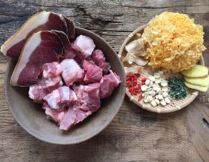 准备配料:葱姜蒜切段,八角红枣冰糖适量