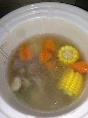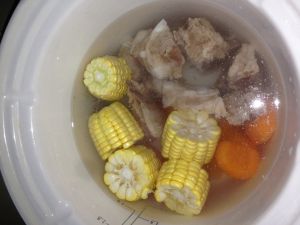 把排骨,胡萝卜,玉米,一同放进电炖锅里或煮粥煲锅里,加适量水盖过食材,选择煲汤键,熬至1到2小时。