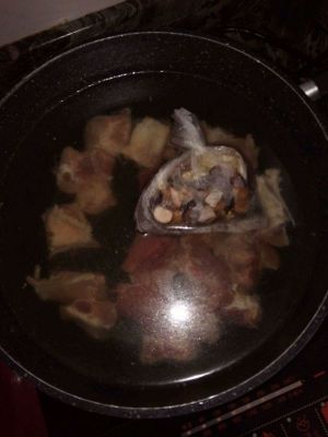 准备八珍料包,我是直接买好的,可以在超市买,也可以药房自己配,但药房配的会比较浓,感觉没有买的这个好喝