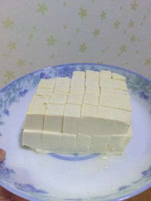 反轉倒出,因為這款已經將4個邊角處理,小貼士(內地的嫩豆腐如果沒有已處理,可以反轉時用剪刀✂️將4個邊角處剪個小口子,這樣就可以倒出完整的一塊豆腐了喔)