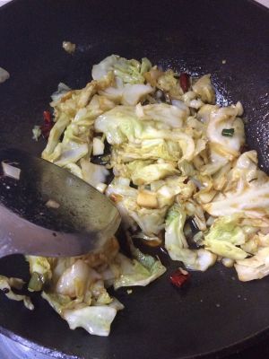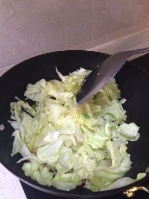 放入包菜,翻炒,加入少量盐