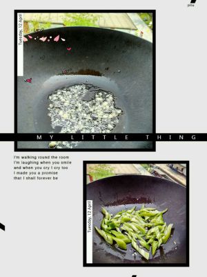 起油锅……放入盐、蒜末炒出金黄色) ~加入尖椒翻滚均匀后……… (喜欢吃辣的亲们可以加些米粒椒喔
