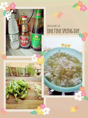 准备好需要的材料:盐、老抽、耗油、尖椒、包菜、