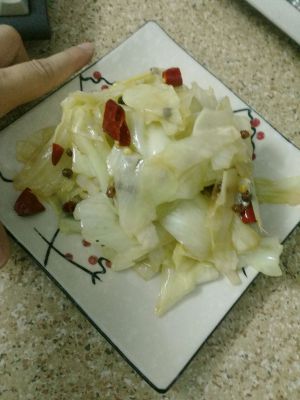 锅里放油,放姜干辣椒花椒炒出味,放入包菜翻炒。