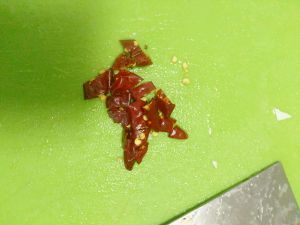 把辣椒干洗干净 切断 放入锅里 加半口的料酒 一点糖 一口陈醋