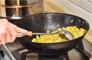 下入玉米粒,翻炒下,然后倒入淀粉水勾芡下