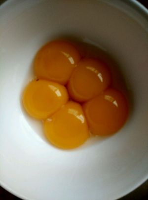 鸡蛋打碎,只要蛋黄,搅拌均匀。