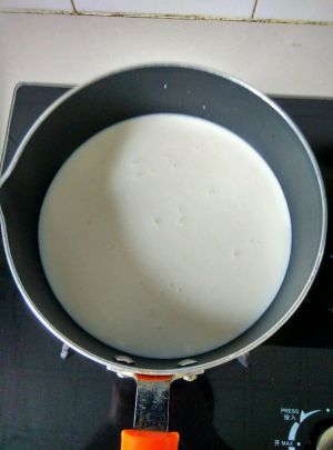 将淡奶油、牛奶和炼乳混合搅拌均匀,加入白糖并小火加热,搅拌至糖融化,关火,不要把牛奶烧开